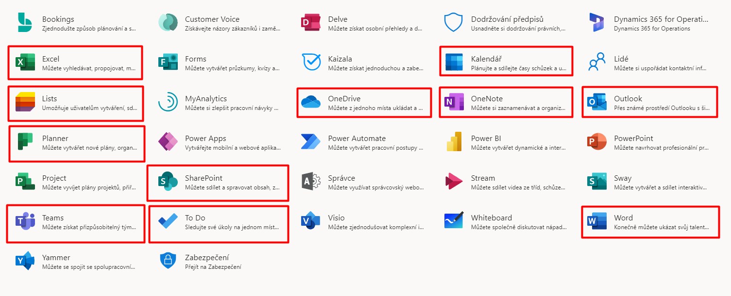 Všechny níže zvýrazněné aplikace vám usnadní administrativní úkony, tvorbu dokumentů, jejich evidenci, komunikaci mezi zaměstnanci atd.