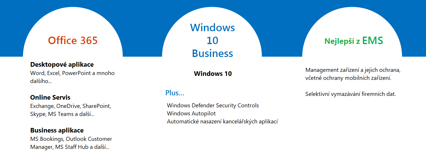 S nadšením a fanfárami představujeme nový produkt – Microsoft 365! Jedná se o komplexní, inteligentní řešení, které umožňuje každému uplatnit svou kreativitu, sdílet svou práci a to při zachování principů bezpečnosti. Microsoft 365 je balíček zahrnující vše, co uživatelé ve firmě potřebují. Spojuje dvě hlavní služby společnosti Microsoft, Microsoft 365 a Windows 10, se správou zařízení a zabezpečení pro ochranu firemních dat.