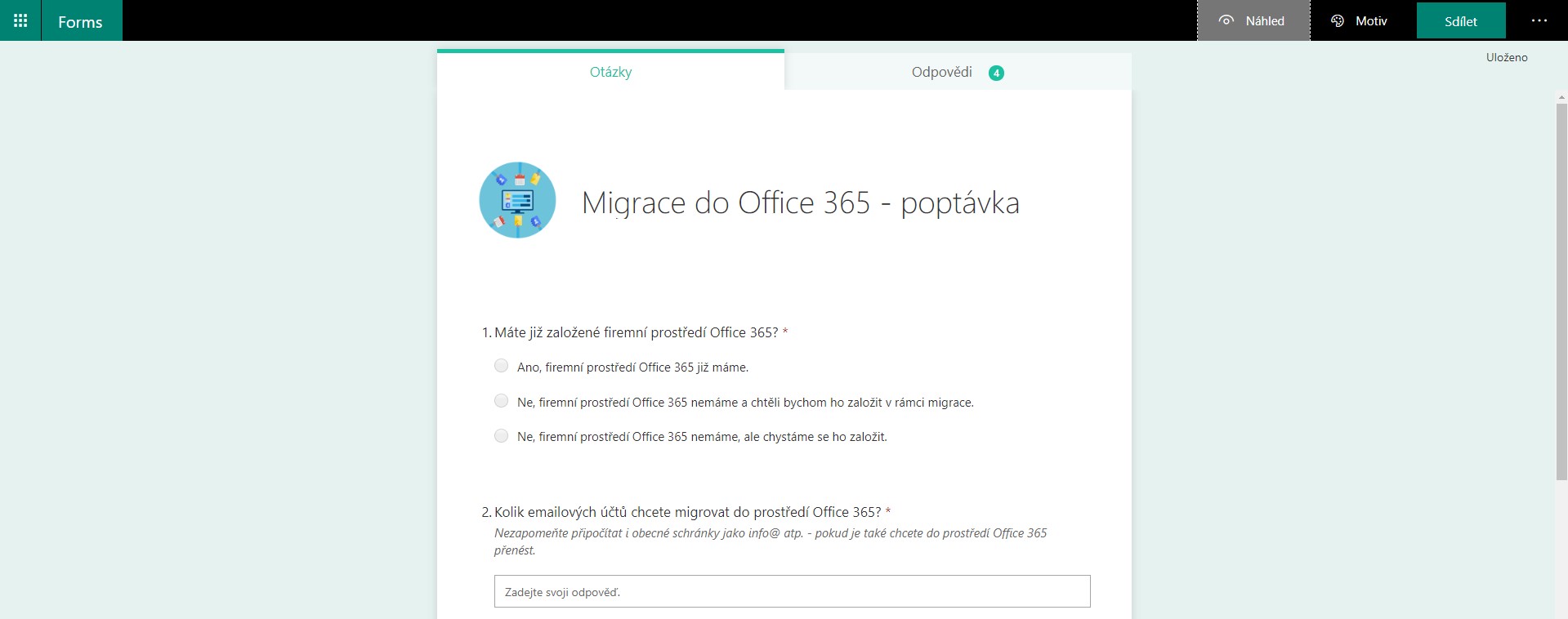 Formulářům můžete jednoduše naklikat firemní identitu, zvolit příslušné barvy, vložit logo. Vše je zabezpečeno, takže se nemusíte bát o únik informací. Informace o dalších funkcích MS Forms se dozvíte ZDE.